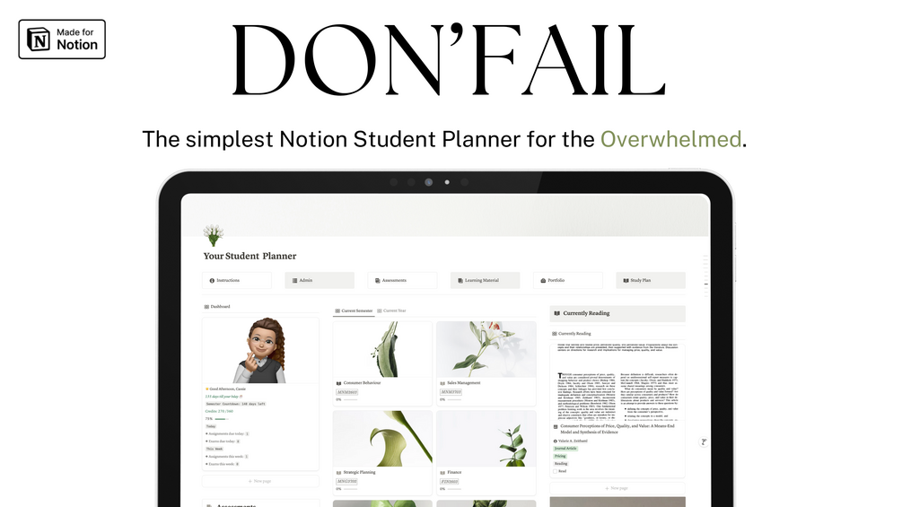 Your student-designed template to help you organise your classes, track deadlines, and plan your future