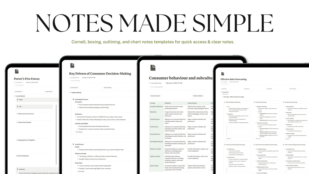 - Note Templates: Cornell, Outline, Boxing, or Chart Notes.