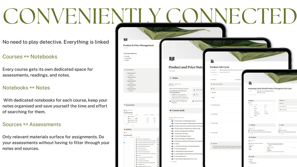 - Notebooks: Dedicated spaces for each course, linked to notes and assessments.