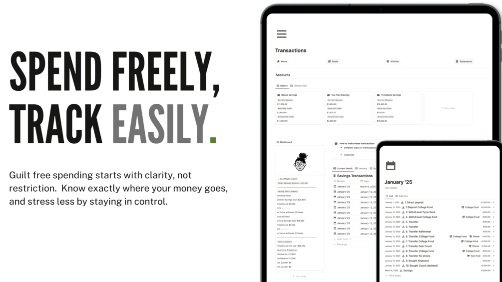 Life’s too short, but the days can be long. This Notion template helps you save smarter, spend freely, and skip the guilt, so you can seize today without sacrificing tomorrow.