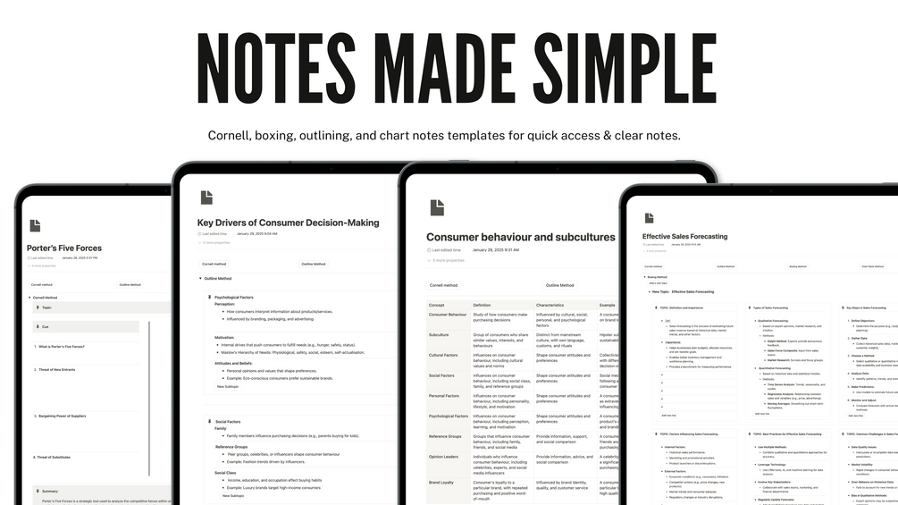 - Note Templates: Cornell, Outline, Boxing, or Chart Notes.